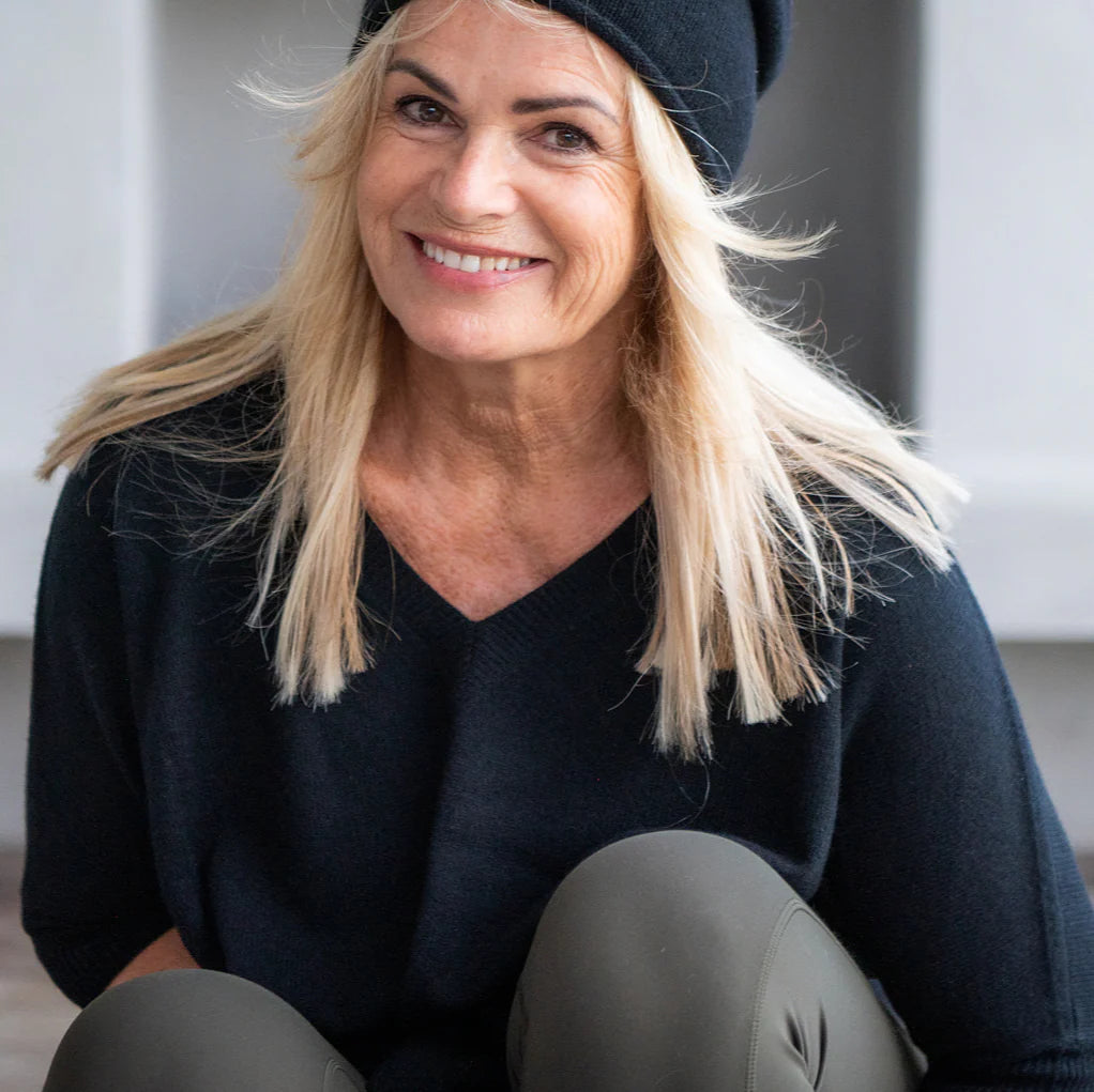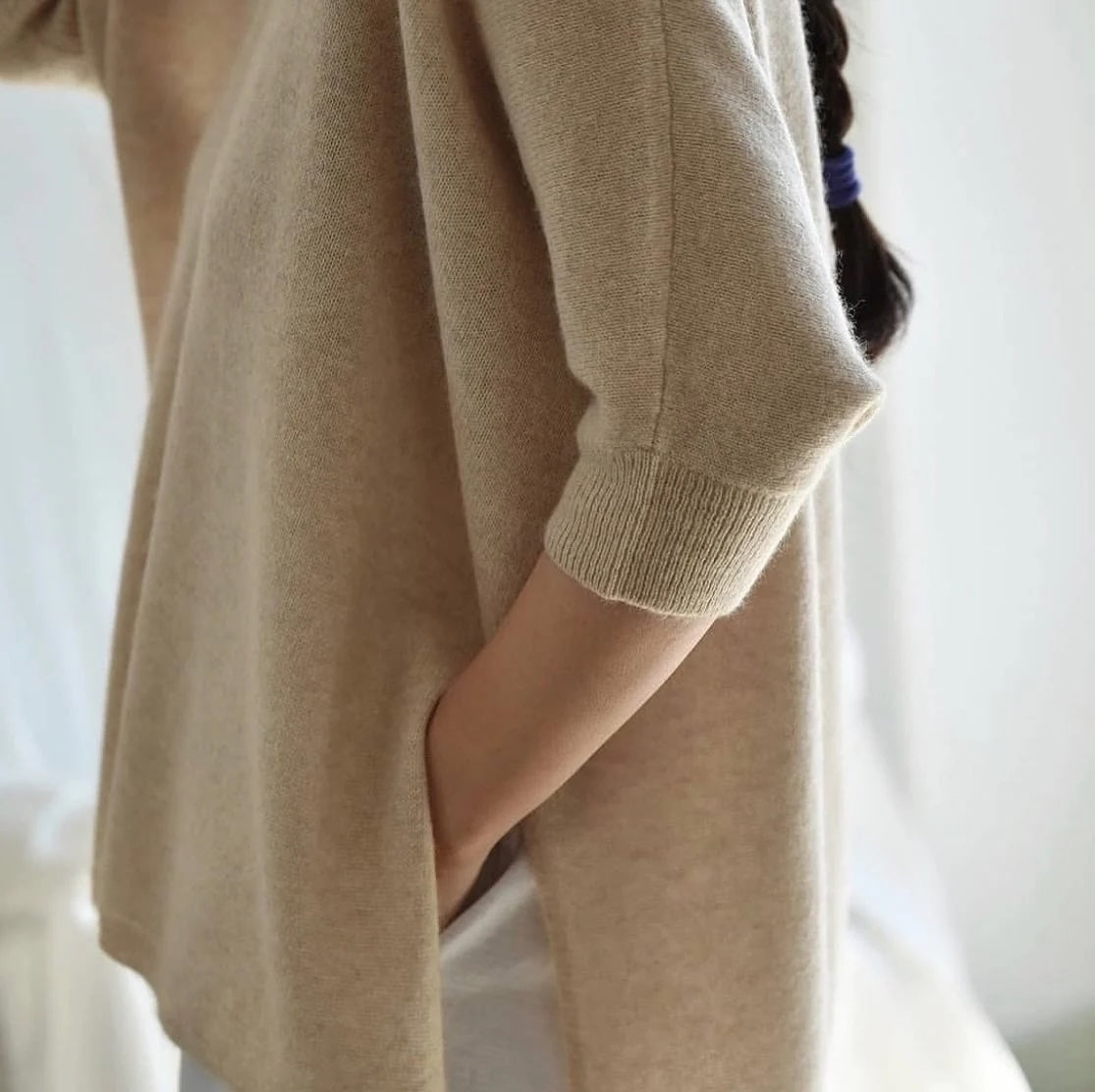 This lightweight cashmere top is a year round favourite - light weight pure cashmere. We love this to travel - popped over a cami offering some soft warmth that breathes with you.