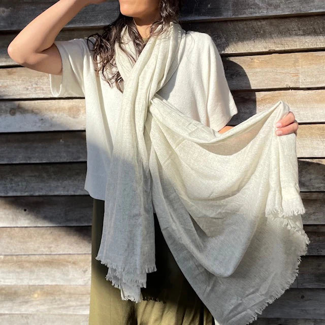 Handloomed Pure Natural Cashmere Wrap. These wraps are as light as cloud and so versatile. Crafted fromnatural cashmere and gently dyed using naturally derived Azo Free colour.