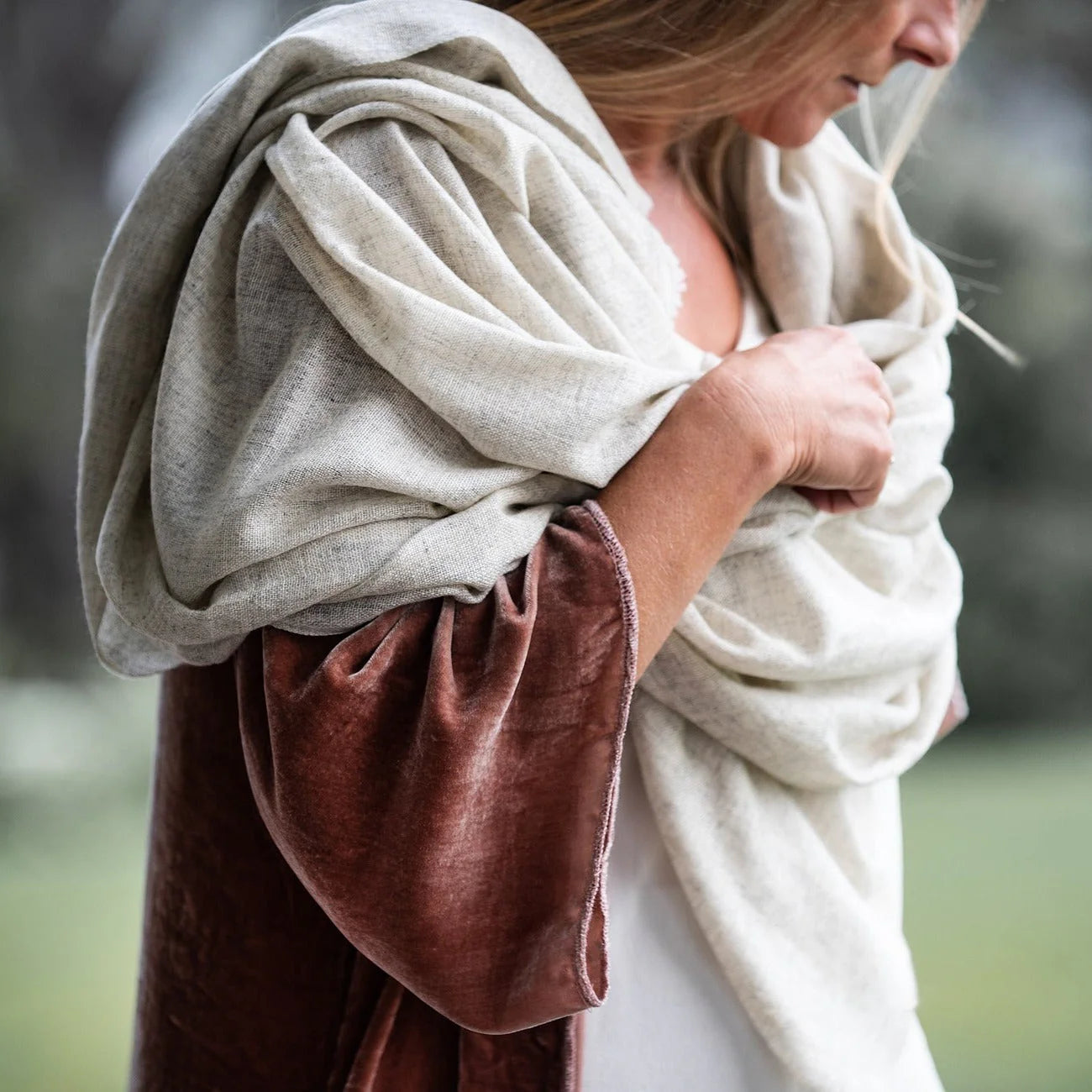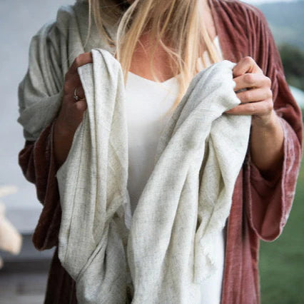A soft textural fine weave crafted by our artisans in Nepal on traditional looms. Timeless soft warmth for any occasion.