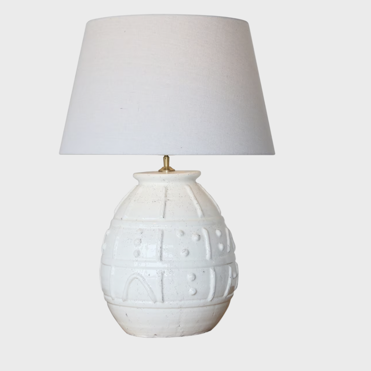 Featuring a white terracotta base and a delicate white linen shade, this lamp brings a clean and sophisticated aesthetic to any room. Whether placed on a nightstand, side table, or console, it effortlessly complements a variety of decor styles. enjoy the soft, warm glow that this lamp provides, creating a cozy ambience in your home. Elevate your space with a touch of timeless elegance. Enjoy the soft, warm glow that this lamp provides, creating a cozy ambience in your home.